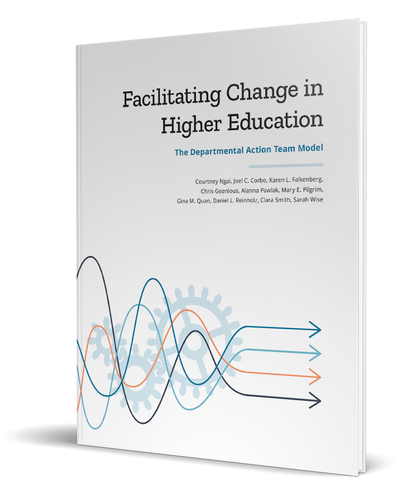 - Corbo, J., Quan, G., Falkenberg, K., Geanious, C., Ngai, C., Pilgrim, M., Reinholz, D., & Wise, S. (2018). Externalizing the Core Principles of the Departmental Action Team (DAT) model. Paper presented at Physics Education Research Conference 2018, Washington, DC. http://dx.doi.org/10.1119/perc.2018.pr.Corbo